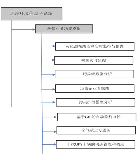 環境GIS充分利用現代計算機技術優勢,發揮強大的計算統計功能、可視化功能和多媒體展示功能,來管理和利用環境保護信息。其系統結構框圖如下: